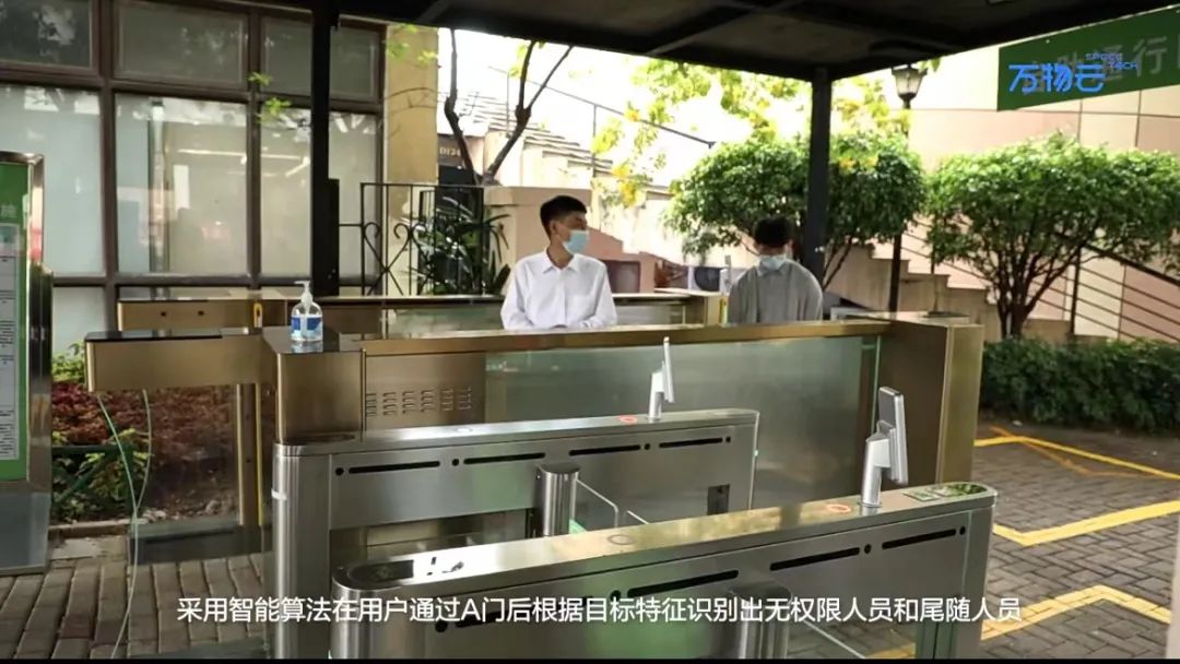 全新投入使用的智慧通行产品,加入AI摄像头人脸识别功能的同时,通过AI摄像头与双闸门联动,若有人想尾随进入,将触发闸机警报,等到尾随者退出门外,第二道门才徐徐打开,守卫回家的安全。